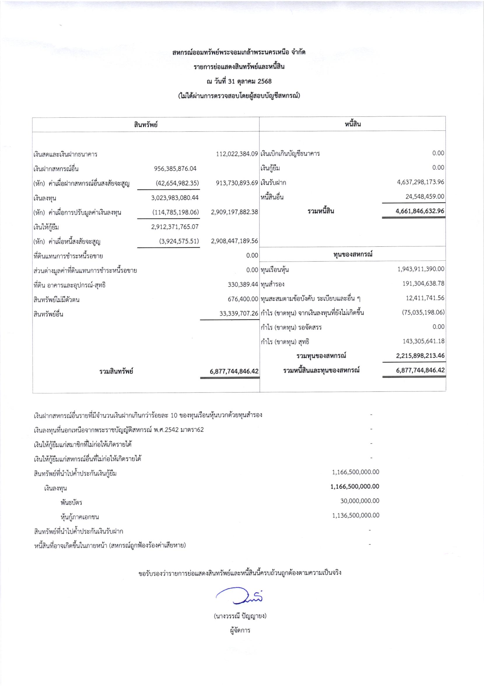 - รายการย่อแสดงสินทรัพย์และหนี้สิน ณ วันที่ 31 ต.ค. 2568