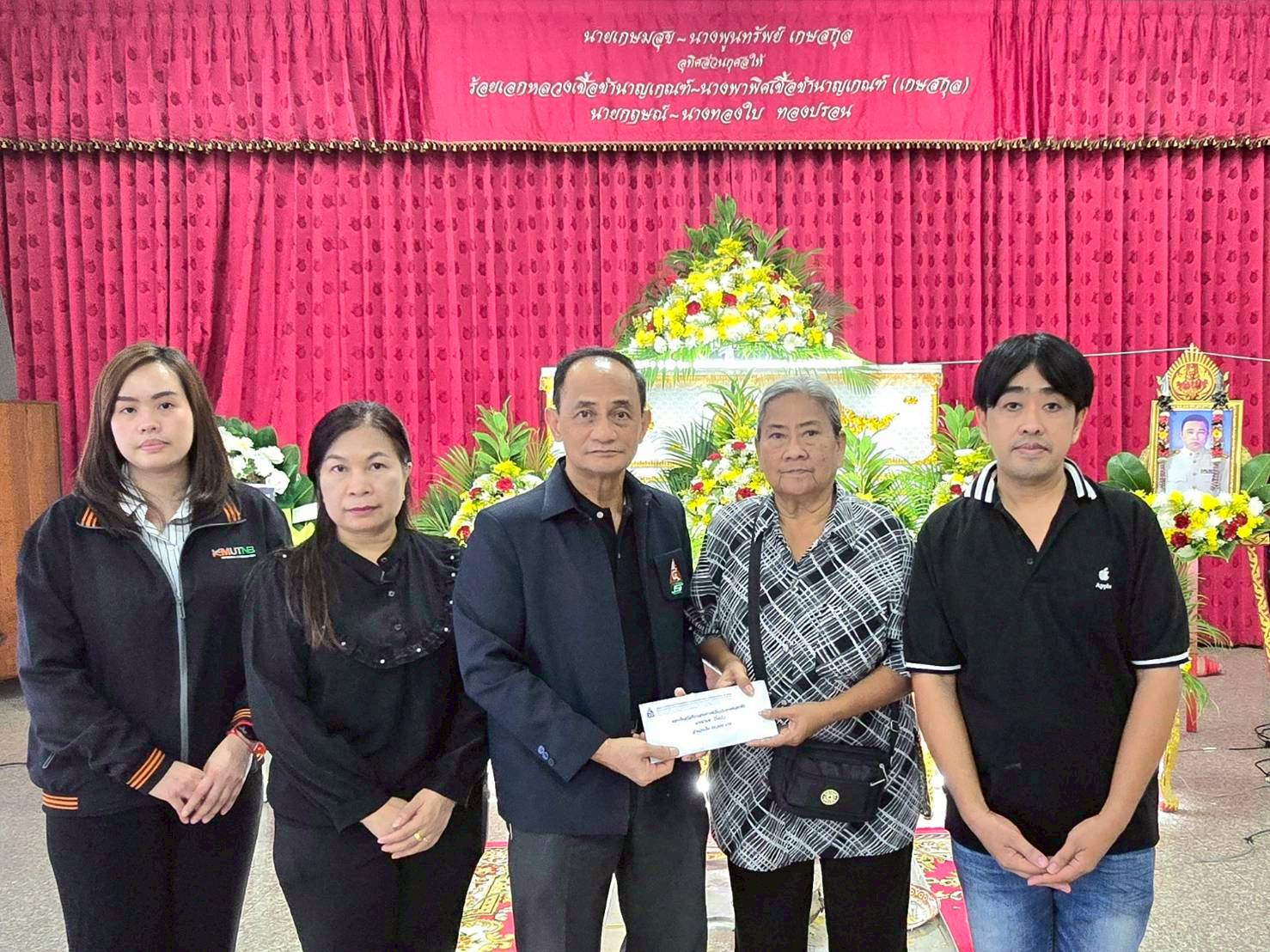 รศ.สถาพร ชาตาคม ประธานกรรมการดำเนินการ พร้อมด้วยนางวรรณี ปัญญายง ผู้จัดการ และนางสาวปิยนันท์ ยุทธนาโยธิน หัวหน้างานเทคโนโลยีสารสนเทศ เป็นตัวแทนของสหกรณ์ออมทรัพย์พระจอมเกล้าพระนครเหนือ จำกัด เข้าร่วมเป็นเจ้าภาพงานสวดพระอภิธรรมศพ และมอบเงินสวัสดิการสงเคราะห์เกี่ยวกับการศพ ของนายมานพ ปิ่นแก้ว ถึงแก่กรรม จำนวนเงิน 50,000 บาท (ห้าหมื่นบาทถ้วน) ให้แก่ผู้รับโอนผลประโยชน์ จำนวน 2 ราย ดังนี้